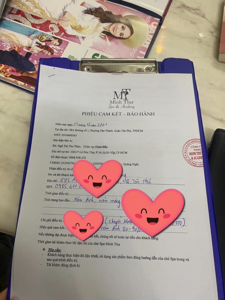 Cảm ơn vị khách đến từ Tân Phú đã tin tưởng và lựa chọn liệu trình baby tại Minh Thư.